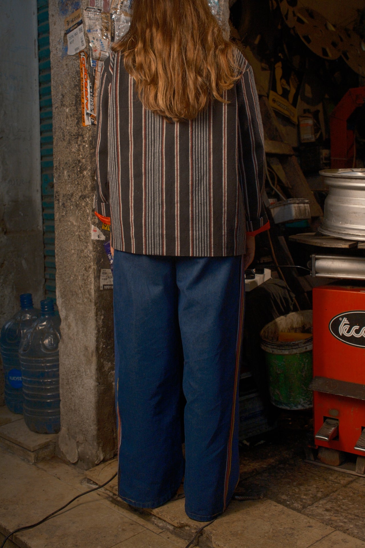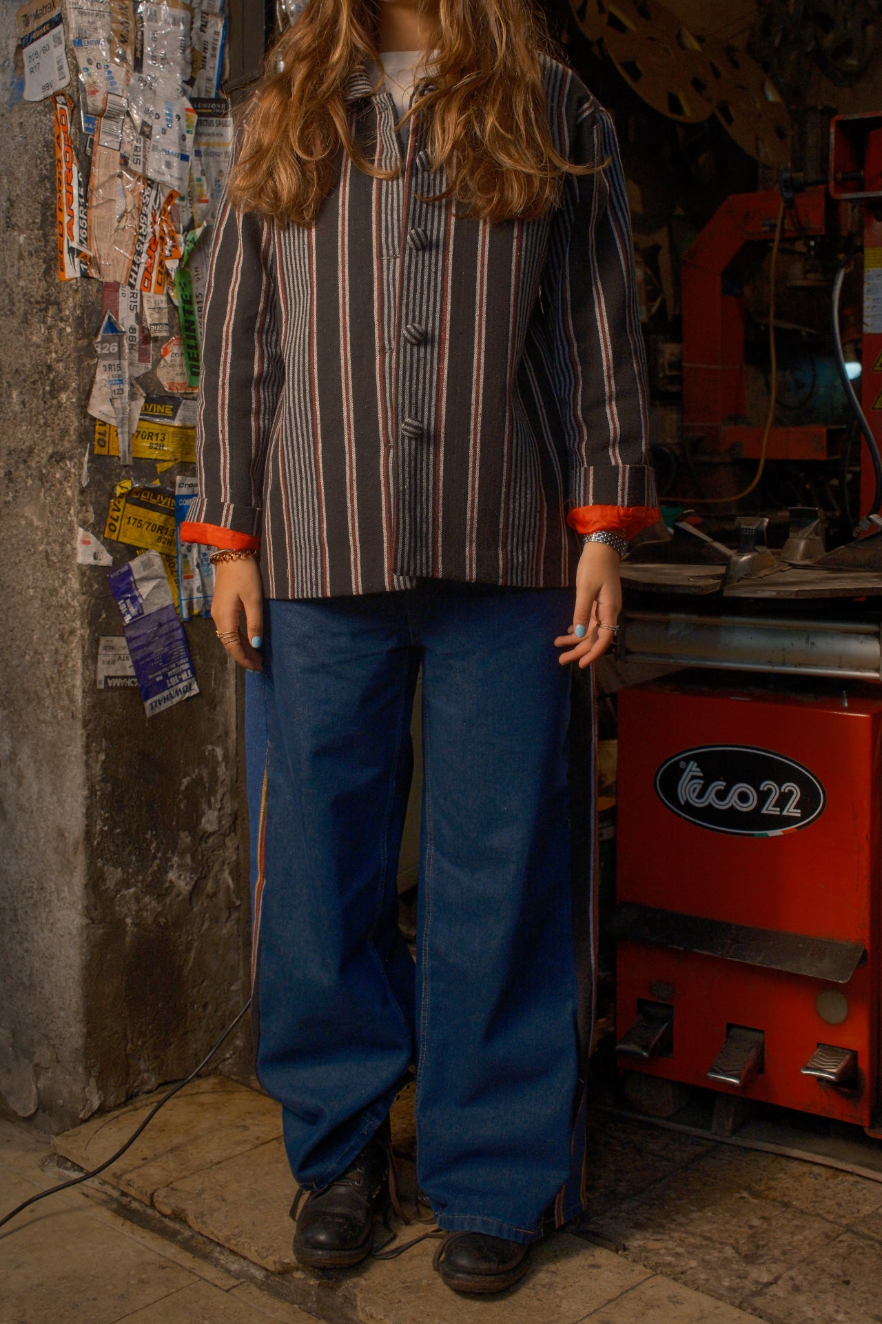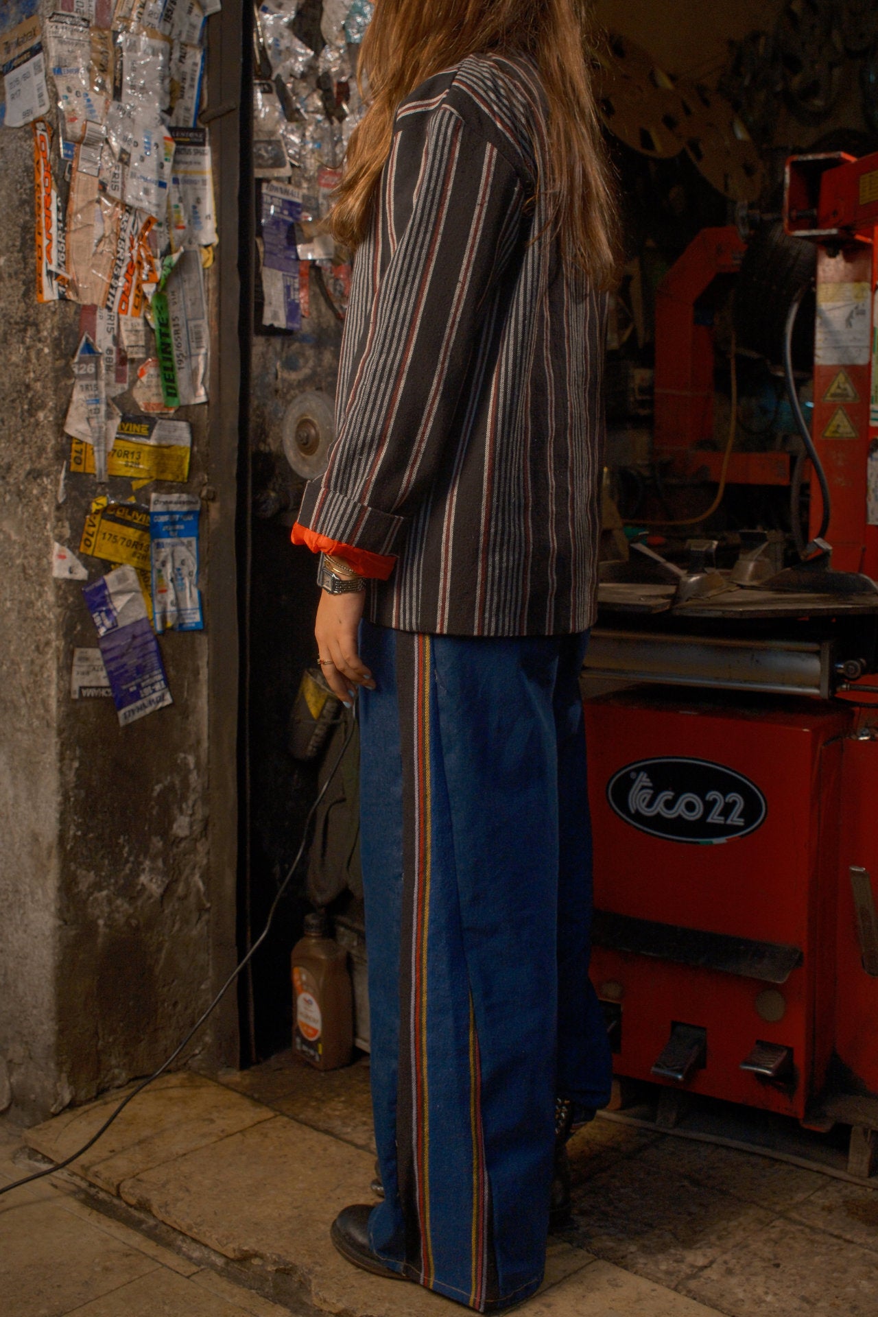 Each jacket is made to order and crafted individually in Cairo, meaning your piece is made especially for you. Because we work with reclaimed materials, no two jackets are ever identical in stripe placement or texture.